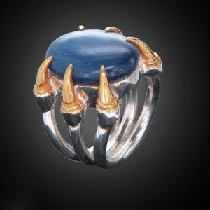 The Claw Ring is a real rock n roll legend. Designed to be hardcore while still being stylish. it is one our most popular creations. Whether you see it as a dragon claw or an eagle claw, it is still a tool for grabbing hold of things and tearing things apart, so it is designed to focus the intention and to grasp hold of what it's after in a direct and uncompromising fashion.