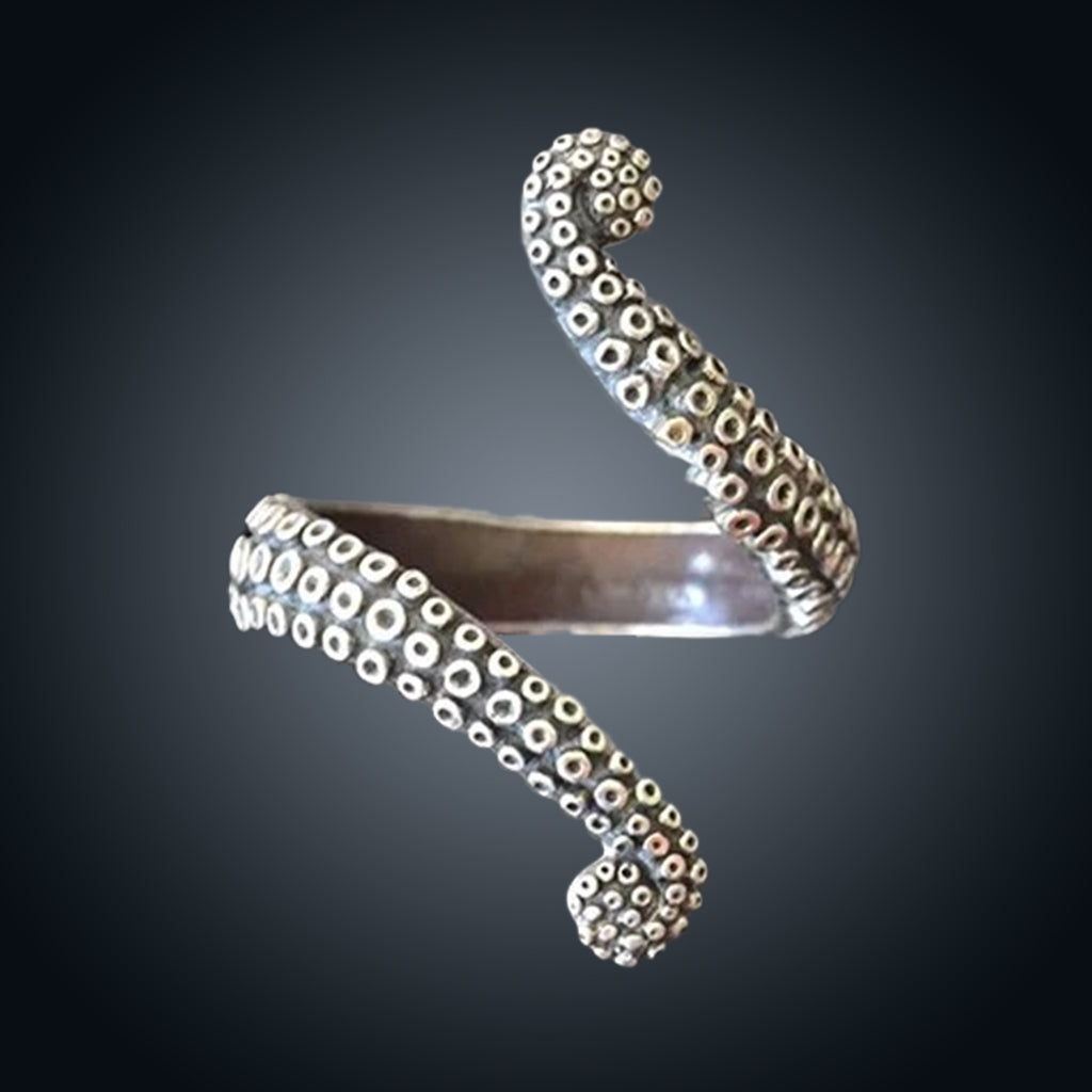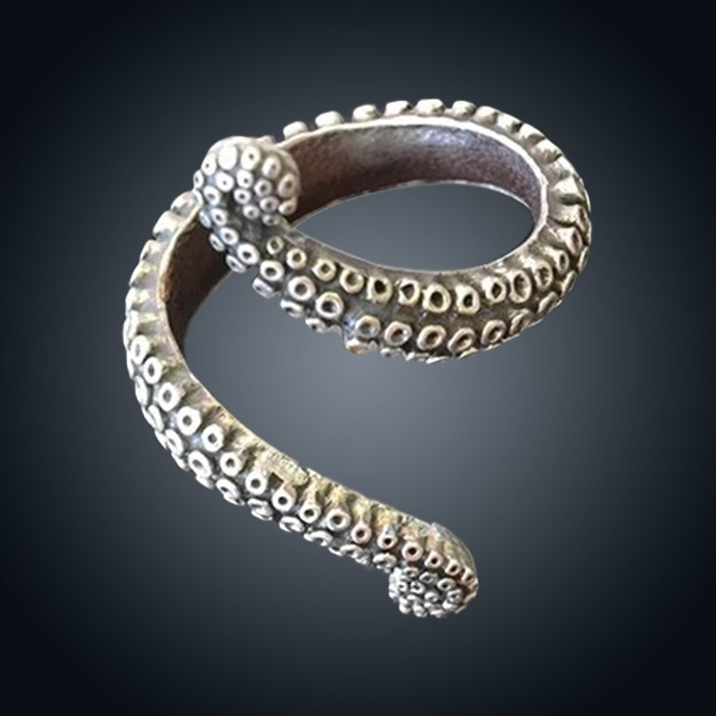 Octopi are known to be really smart creatures, being able to imitate and mimic other animals. This is a big Tentacle cuddle right around your wrist. Hand cast in sterling silver with raised suckers this sensual bracelet has leather on the inside to make her more comfortable and is slightly flexible so she can be adjusted to your particular desire.