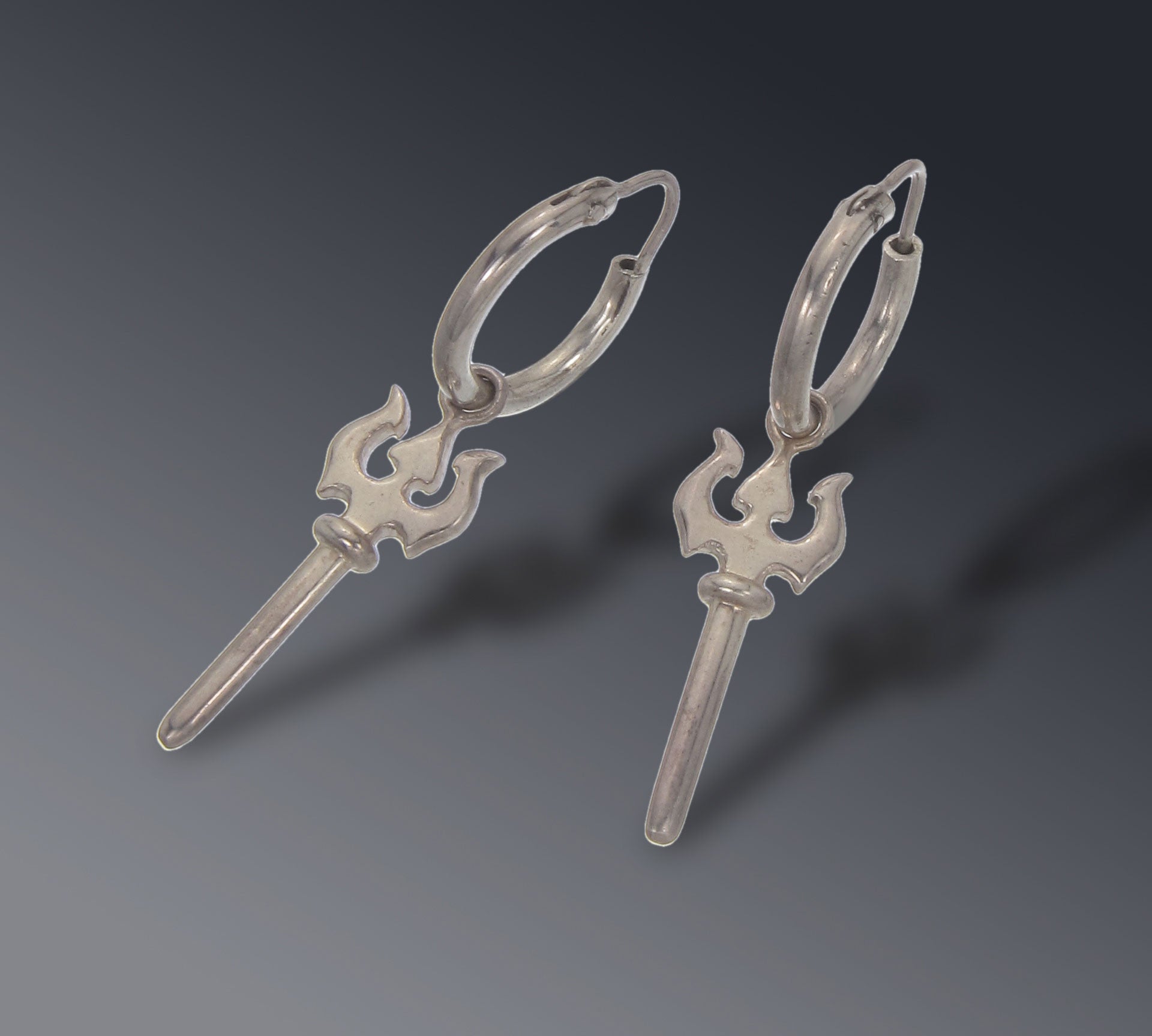 The Trident symbol is widely used in many cultures. It is the power weapon of the Greco-Roman God of the seas (Neptune or Poseidon), and the symbol of the Hindu God Shiva, master of Creation and destruction. In the Christian tradition it is often assocaited with the pitchfork of Lucifer, the carrier of the light, the Fallen Angel, and most likely has pagan origins. Whatever your belief, it has definite attitude and is used in these unique earrings as a symbol of strength and protection.